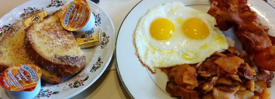 Meat Choices: Bacon, Sausage, Turkey Sausage, Ham Steak, Corned Beef Hash, Pork Roll, Canadian Bacon, Scrapple